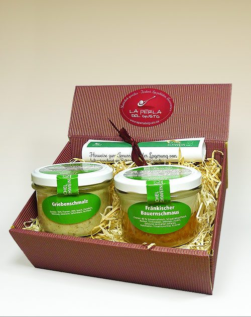 Fränkischer Bauernschmaus & Griebenschmalz vom Eichelschwein (Waldweiden-Haltung) im Präsentkarton.