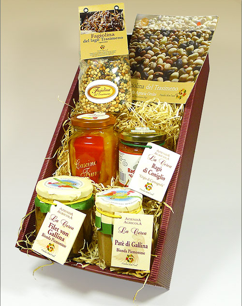 Ragu vom grauen Carmagnola-Kaninchen (180g) und Bohnen vom Trasimenischen See (250g) im Präsentkarton.