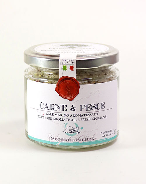 Meersalz aus Trapani auf Sizilien, abgestimmt mit landestypischen Kräutern und Gewürzen. Perfekt zu Fisch- und Fleischgerichten, aber auch super zu Gemüse.
