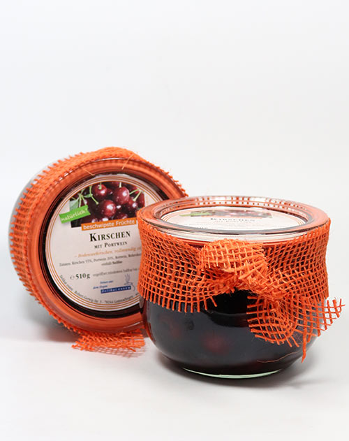 Mit Portwein, Rotwein und Gewürzen eingelegte Kirschen aus dem Hegau am Bodensee