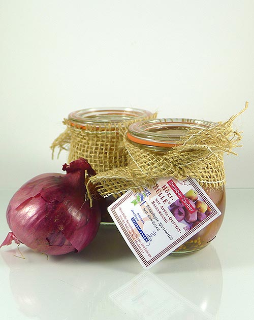 In Apfel-Quitten-Balsamessig eingelegte Höri-Bülle-Zwiebelchen