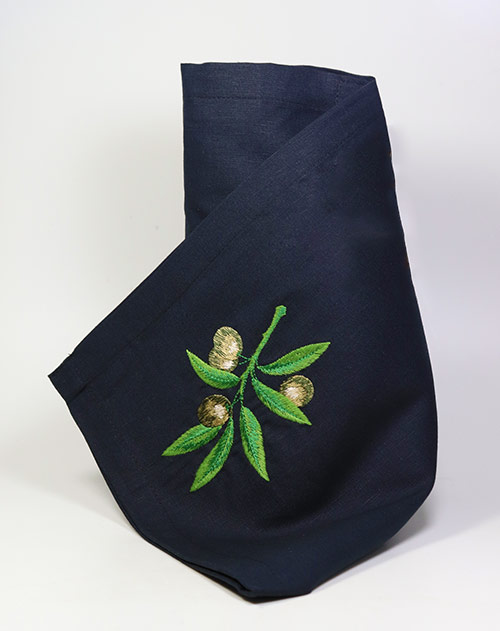 Stoff-Serviette mit handgesticktem Oliven-Motiv