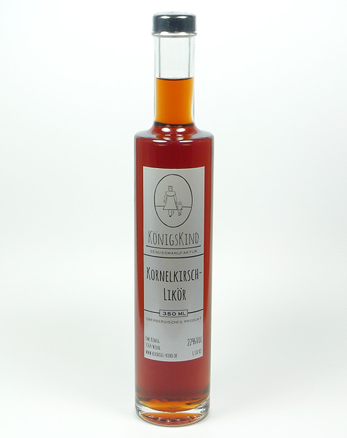 Die erstklassigen Liköre von Königskind werden alle aus unbehandelte Früchte aus Oberbergischer Natur hergestellt. Für die meisten Liköre verwendet Herr König seine eigenen sortenreine Brände aus selbst gepflückten Früchten, die er mit seiner Familie anbaut oder die ihnen die heimische Natur schenkt. Aus diesen Früchten setzt er selbst in Fässern seine Maische an. Sobald die Vergärung abgeschlossen, brennt eine regionale Brennerei aus der Maische den sortenreinen Brand, mit dem die Liköre angesetzt sind.