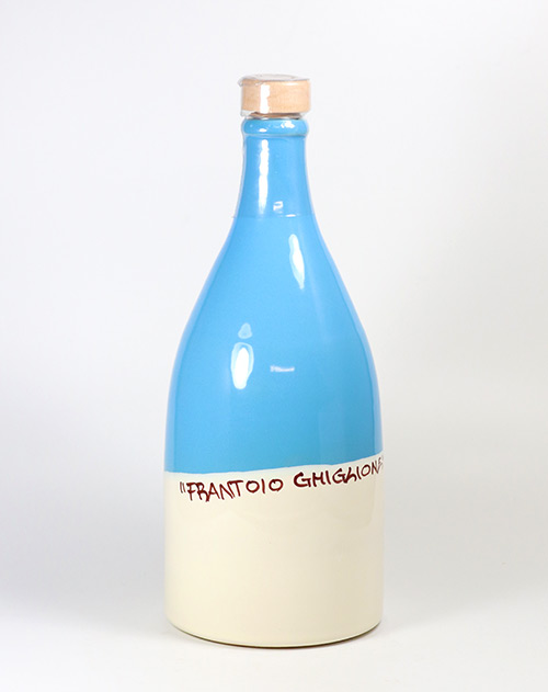 Sortenreines, natives Olivenöl extra von der ligurischen Riviera, unfiltriert, in der Keramik-Zierflasche