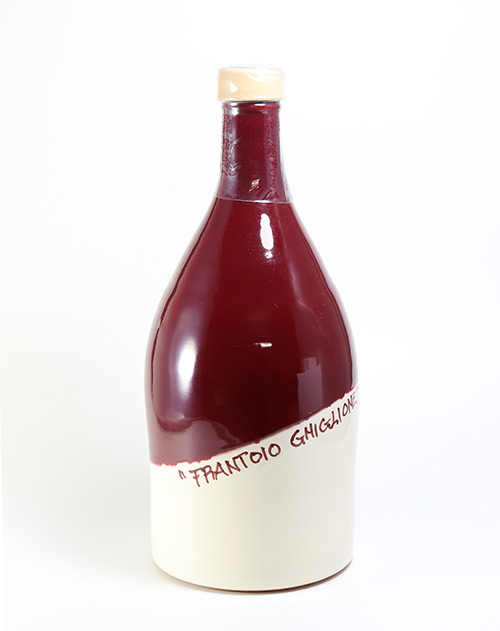Natives Olivenöl extra, sortenreines Taggiasca-Olivenöl - Olio Extravergine di Oliva Cultivar Taggiasca, Ghiglione 500ml in Zierflasche weinrotNatives Olivenöl extra, sortenreines Taggiasca-Olivenöl – Olio Extravergine di Oliva Cultivar Taggiasca, Ghiglione 500ml in Zierflasche weinrot