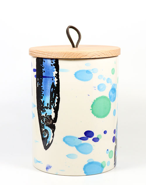 Keramik-Dose (mittel) mit Fischen und Farbtupfern