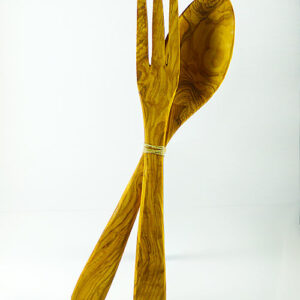 Dieses schöne Salatbesteck (Abbildung nur beispielhaft) ist aus Olivenholz und wird im italienischen Foligno (Umbrien) von Scipio De Curtis liebevoll von Hand hergestellt. Das Olivenholz ist von hoher Qualität und wird mindestens vier bis fünf Jahre lang abgelagert, um es gründlich trocknen zu lassen. Die Maserung des Olivenholzes ist unvergleichlich und einzigartig in seiner Art. Jedes Paar wird gleich nach seiner Erschaffung mit Sonnenblumenöl eingeölt, um es vor Wasser und Gerüchen zu schützen.