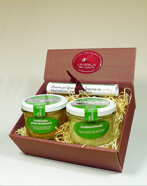 Fränkischer Bauernschmaus & Griebenschmalz vom Eichelschwein (Waldweiden-Haltung) im Präsentkarton.