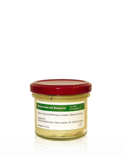 Rosmarin-Speckcreme aus luftgetrocknetem Rückenspeck vom Eichelschwein v. d. Waldweide