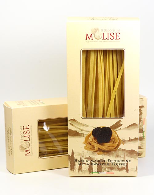 Gourmet-Pasta aus italienischem Hartweizengries, frischen Eiern und mindestens 4% bestem schwarzem Sommertrüffel aus Molise