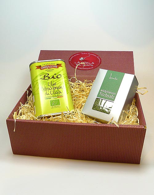 Geschenkset ‚BIO-Olivenöl & Wildpflanzen-Tischsalz‘