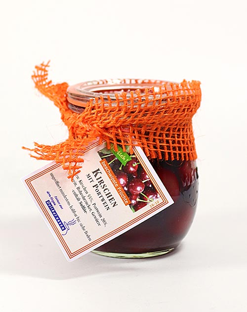 Mit Portwein, Rotwein und Gewürzen eingelegte Kirschen aus dem Hegau am Bodensee