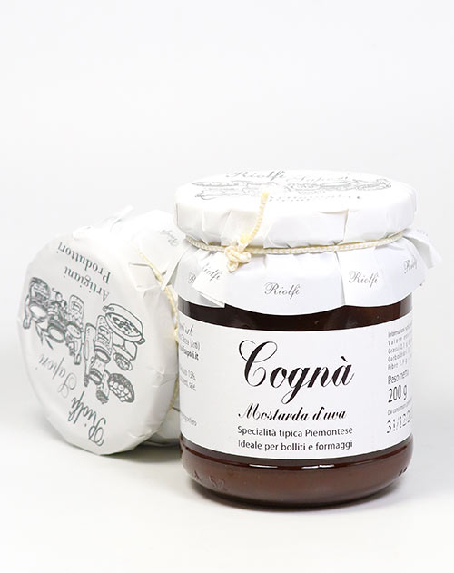 Mostarda aus Muskatellertrauben-Saft, Äpfeln, Birnen, Pfirsichen und Kürbis (Piemont)