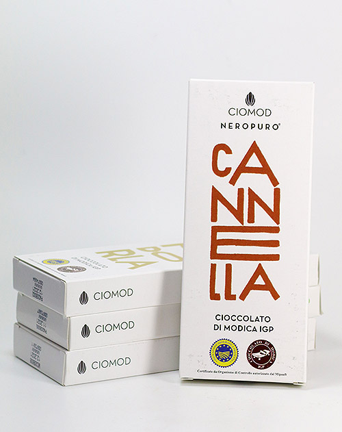 Kalt zubereitete Schokolade aus Modica (Sizilien), mit braunem Zucker und Zimt.