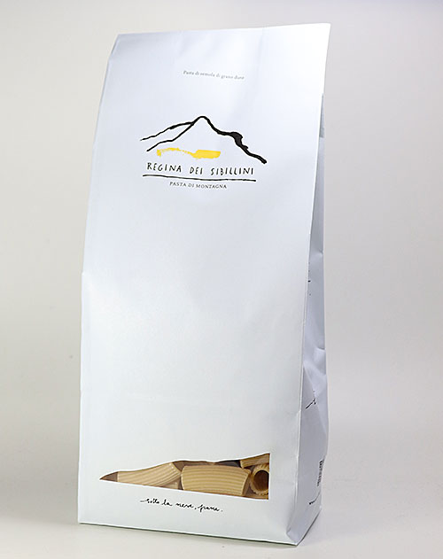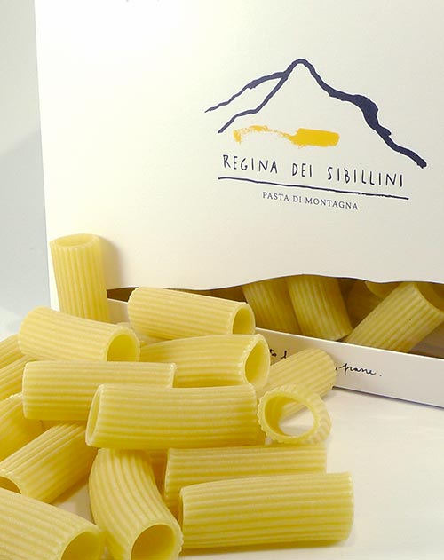 Die „Azienda Regina dei Sibillini“ produziert Nudeln nach handwerklichem Verfahren: die Pasta wird durch Bronze gezogen und dann bei niedrigen Temperaturen schonend getrocknet. Es wird nur Weizen verwendet, der in Höhen von 600 bis 900 m Meereshöhe in Mitten des Nationalparks Monti Sibillini angebaut wurde.
