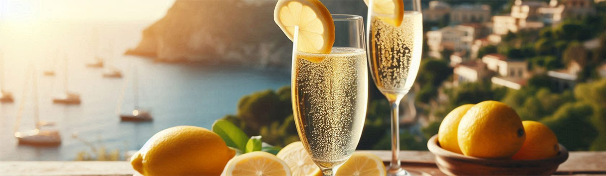 Feiner Limoncello von der Amalfiküste mit feinperligem BIO Prosecco aus Venzien, dazu zwei lockere, frische Amaretti al Limone