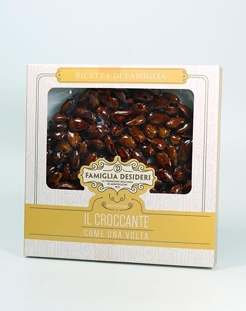 Wir empfehlen Ihnen auf jeden Fall, diese süße Nascherei einmal auszuprobieren. Auch die Verpackung ist in ihrer Schlichtheit sehr schön. Perfekt zum Verschenken mit Cantuccini oder Cialde von der Famiglia Desideri. Ideal für Freund/innen krokanter Köstlichkeiten