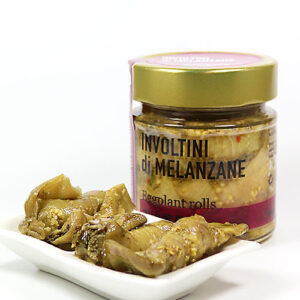 Die Involti die Melanzane gehören zu den ganz typischen italienischen Antipasti. Es gibt zahllose Rezepte dieser Vorspeise bis zur Involti al forno, die im Ofen gebacken wird. Diese köstlichen Auberginen-Röllchen aus Kalabrien werden nach einem alten Rezept von Maria Cordi, der Mama von Valentina Brizzi, von Hand mit Sardellen, Knoblauch und Kräutern gefüllt. Akribisch und präzise werden sie von Hand gerollt und erhalten so ihre appetitliche Form.
