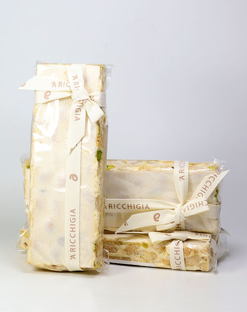 Genießen Sie ein herrlich weiches Mandel-Nougat aus Sizilien! Das mit Zucker und Honig cremig aufgeschlagene Eiweiß ist gefüllt mit besten, gerösteten sizilianischen Mandeln. Ideal zum Verschenken oder selbst naschen. Das weiche sizilianische Nougat ist es ein echtes Geschmackserlebnis.